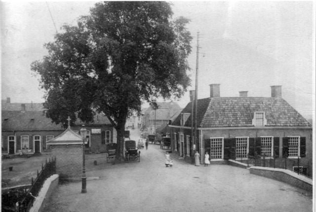 Zie Oud Alblasserdam 7 Sluis op de Dam omstreeks 1910. Voor het Waardhuis, nog in oorspronkelijke toestand staan nogal wat koetsen, reden om aan te nemen dat er vergadering van het bestuur van de Nederwaard wordt gehouden. De rij huisjes tegenover het Waardhuis vormden het Noorderstek, ongeveer ter plaatse waar nu de Havenstraat loopt. Gezien de hoek waaronder de foto is genomen, lijkt het aannemelijk dat deze vanuit een bovenraam van Slijterij van Krimpen is genomen. Lantaarns opsteken. Links op de sluis staat een lantaarnpaal, waarvan de verlichting geschiedt door middel van petroleum. Het lantaarn opsteken gebeurt omstreeks die tijd door de heren Van Wijnen en Erkelens. De laatste nam de lantaarns op Dam, Kerkstraat, Polderstraat en Hoogendijk voor zijn rekening, de eerste liep vanaf de Dam, heel Cortgene, Oost- en West-Kinderdijk uit, tot aan het kantoorgebouw van Kloos Kinderdijk NV. Niet alleen omdat daar ongeveer de grens van Alblasserdams grondgebied ligt, nee, maar ter plaatse begon elektrische straatverlichting. Een straatverlichting die ongeveer ophield bij het postkantoor in de Kinderdijk en die geen gemeentelijke, maar een particuliere aangelegenheid was. Onderaan de machinefabriek van voorheen J. & K. Smit stond de centrale Kinderdijk, die zorgde voor licht langs de dijk en in huis voor de directieleden van Kloos en L. en J. & K. Smit. Machinist was de heer Van den Berg. Maar om terug te komen op onze lantaarnopsteker Van Wijnen, deze begon zijn lantaarns aan te steken bij de vroegere scheepswerf van Jonker. Daartoe werd gebruik gemaakt van een laddertje, met een inkeping in de bovenste sport om glijden te voorkomen. Een van de raampjes van de zeskantige lantaarn werd geopend en met een lucifer werd licht gemaakt. Oppassen dat de pit niet begon te roken en dan vlug het raampje dicht om doven van het lichtpuntje, want meer was het niet, te voorkomen. Met een beetje wind gelukte dat niet altijd even goed. Vooral als het wat hard waait kan dat nogal eens gebeuren, dat men, voordat men goed en wel beneden was weer de ladder op kon, omdat de wind onder de kap van de lantaarn was geslagen. Zo zakte men dan de Kinderdijk af tot men op de Dam uitkwam. Behalve lantaarnopsteker, waren de heren Erkelens en Van Wijnen ook nachtwaker en moest men om het uur de tijd afroepen, bijvoorbeeld “10 heit de klok, 10 uur”, waarna twee slagen met de klepper werden gegeven. Deze nachtdienst duurde van 10 tot 4 uur, in tegenstelling tot de dagpolitie, toentertijd gevormd door de agenten Praag en Zwart en later Kaat en Leuhof. Het tijdstip van aansteken hing af van het jaargetijde en maanstand, ’s Zomers brandden geen lantaarns, omdat de zon toch laat onderging en in de andere jaargetijden was het criterium of het volle maan was of niet. In het eerste geval behoefde men ook de lantaarns niet aan te steken, in de andere gevallen van wassende maan, eerste en laatste kwartier wel. Dat kon in de wintermaanden reeds in de late middaguren het geval zijn. Niet alleen aansteken, maar ook het uitblazen van de petroleumlichtjes behoorde tot de taak van deze mensen in gemeentedienst. Om 10 uur ’s avonds werd begonnen, daar waar men de ladder het laatst had gebruikt voor het aansteken en in omgekeerde richting werden de lantaarnpalen weer met een bezoek vereerd. Het uitblazen gebeurde met een koperen blaaspijpje van ongeveer 40 cm lang, dat door de opening in de kop van de lantaarn gestoken werd. Eenmaal per week werden de lantaarns onder handen genomen, werd koper gepoetst, de pitten en raampjes schoongemaakt en de tank met petroleum bijgevuld. Al met al tijdrovende werkzaamheden, die weinig geld in het laatje brachten, waarom in de resterende uren van de dag andere werkzaamheden voor particulieren e.d. werden verricht, zoals bijv. het schoonhouden van een of twee ‘slagen’ (delen) van De Alblas, welke werkzaamheden van De Nederwaard na het uitbrengen van een bod werden aangenomen. Het lantaarn opsteken verdween met de komst van het elektrisch licht in de jaren 1916 tot 1918.