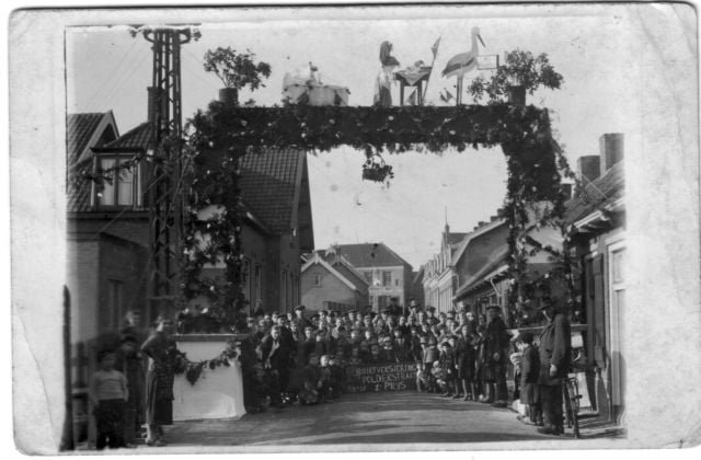 Erepoort gebouwd in afwachting van geboorte koningskind Buurtfeest 1938 1e prijs. Zie ook 76 van Kent u ze nog de Alblasserdammers.